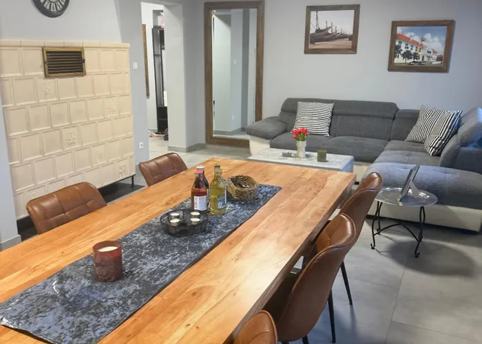 The accommodation offers self-catering amenities, such as a shared kitchen, and an outdoor dining area for guests' convenience. Wg-Zimmer-Monteurzimmer-Ferienwohnung Bis 10 Personen is just steps from Siersdorf Schloesser bus station.